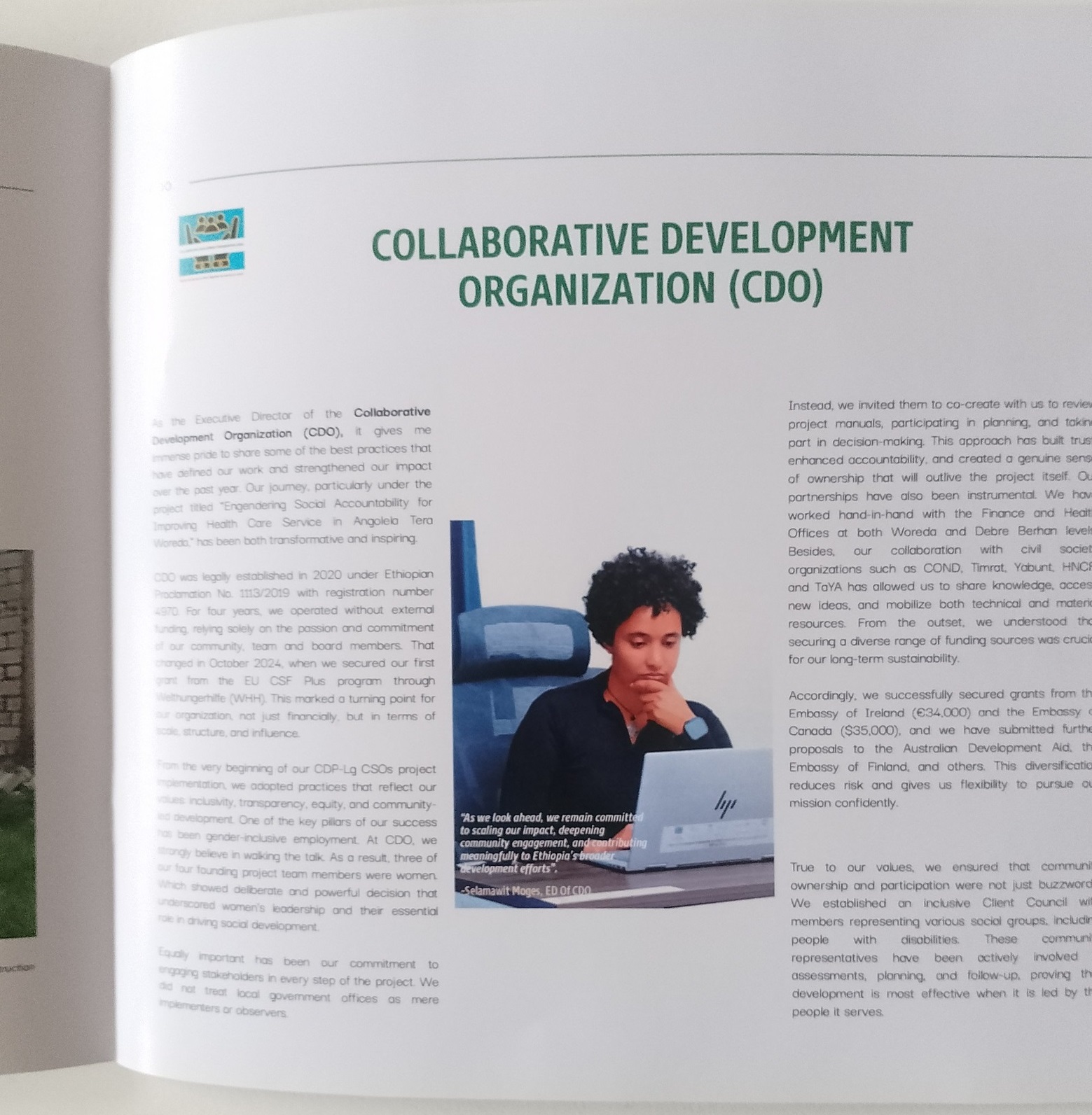 | We proudly represented Collaborative Development Organization (CDO) at the highly successful EU CSF+ Program Learning and Experience Sharing Workshop, hosted at the Hilton Hotel.\r\nWe extend our deepest gratitude to the European Union (EU) for generously funding this critical program, and to ACSO, WHH, COSAP, and DEC for their excellent collaboration in organizing this impactful event.\r\nThe day was anchored by a compelling Panel Discussion and Experience Sharing session centered on a critical theme: \"Voice of Women: The Role of Women CSOs Leaders in Organizational Transformation and Mainstreaming a Right-Based Approach.\"\r\nCDO, alongside three other dynamic women-led Civil Society Organizations (CSOs), provided tangible examples of good practices and strategic insights. This exchange underscored the undeniable power of female leadership in accelerating organizational excellence and solidifying a Human Rights-Based Approach in programming.\r\nA truly vital platform for collective learning and strengthening the future of development work.\r\n#EUCSF+#EUfunded #WomenInLeadership #RightBasedApproach #DevelopmentStrategy #CSOs #OrganizationalChange #ACSO #WHH #COSAP #DEC #CDO |